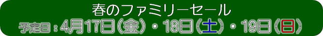 - 2026年4月17日・18日・19日 春ファミリーSALE 開催のお知らせ